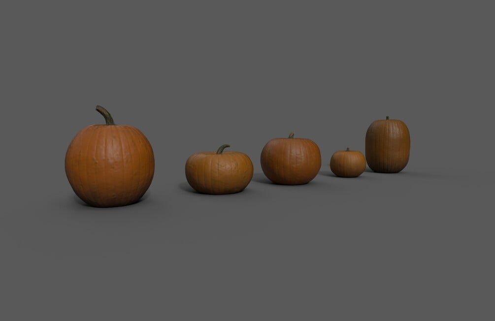 You'll get all 5 pumpkins as single fbx file, or blend file; A texture map in 4k which applies to all 5 pumpkins.